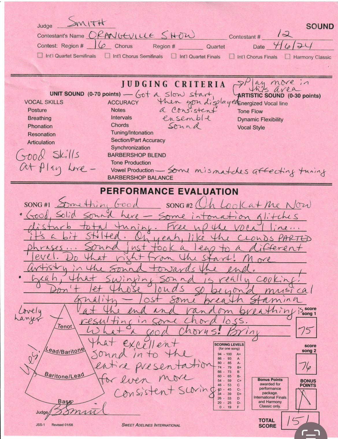 Chorus Score Sheets